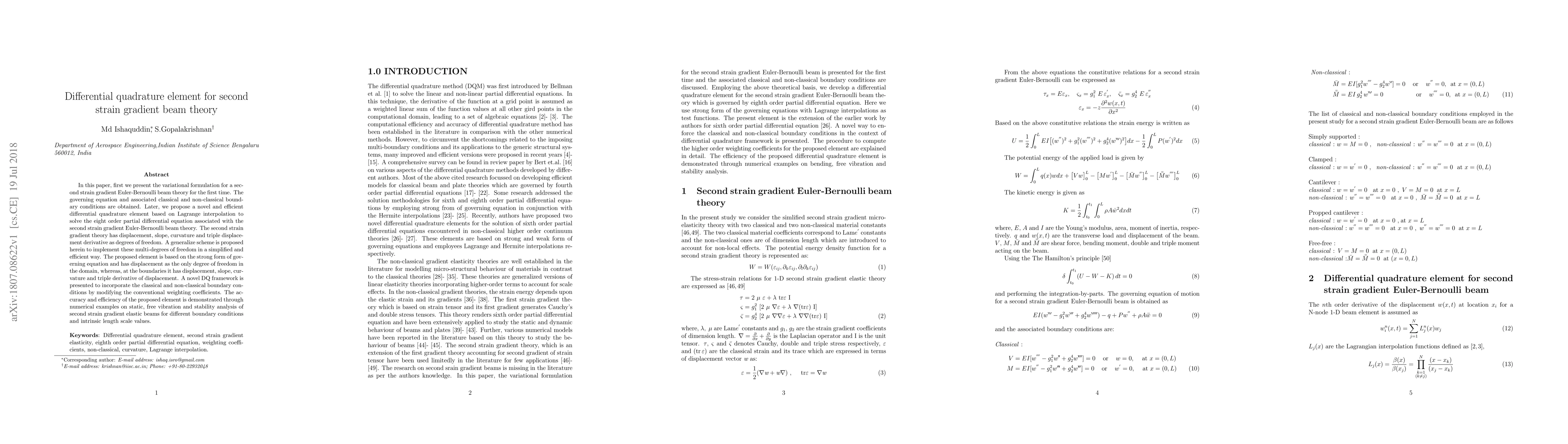 This paper introduces a new differential quadrature element for solving second strain gradient beam theory equations, showcasing improved accuracy and efficiency in analyzing beams with complex deformations.