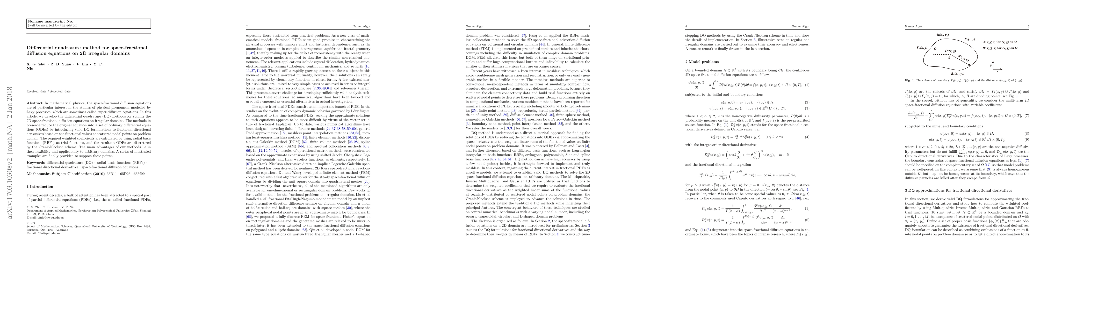 This paper develops differential quadrature methods for solving 2D space-fractional diffusion equations on irregular domains, transforming the problem into ordinary differential equations using radial basis functions and the Crank-Nicolson scheme. The proposed approach highlights flexibility and applicability to various domains, demonstrated through illustrative examples.