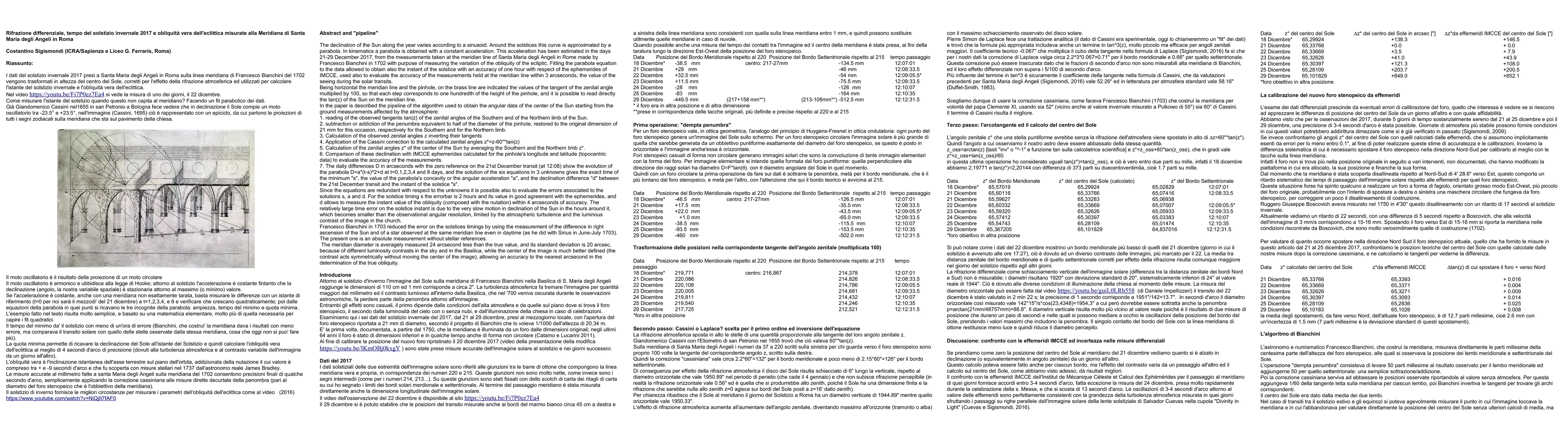 Researchers measured the Sun's declination at the meridian line in Rome using historical data from 1702 to find the timing of the winter solstice with an accuracy of one hour, correcting for atmospheric refraction.