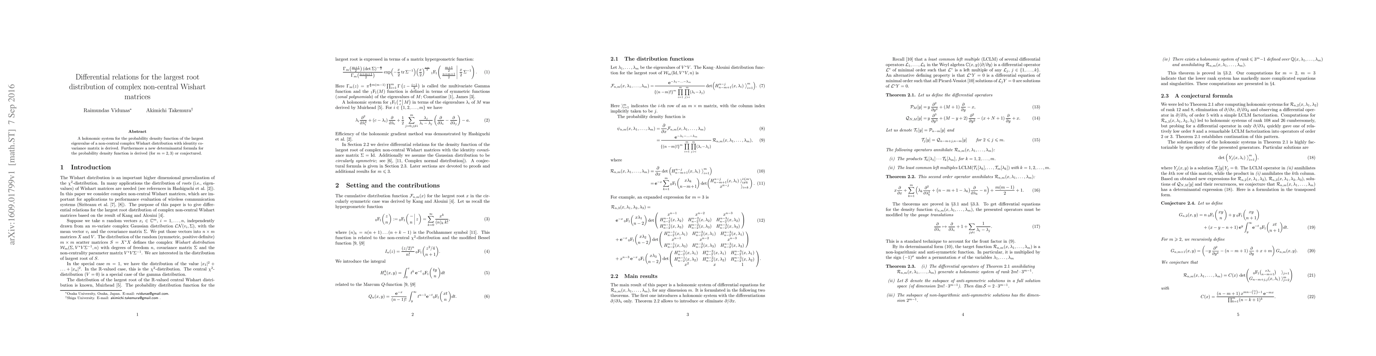Researchers derived a holonomic system for the probability density function of the largest eigenvalue of non-central complex Wishart matrices, providing a new determinantal formula with implications for statistical analysis.