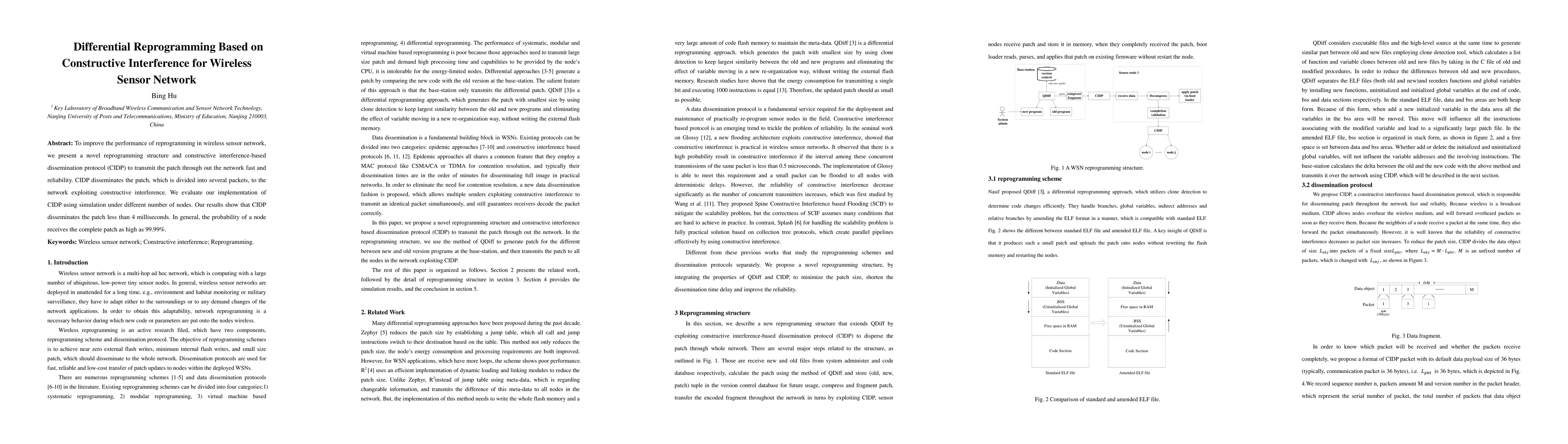 To improve the performance of reprogramming in wireless sensor network, we present a novel reprogramming structure and constructive interference-based dissemination protocol (CIDP) to transmit the patch through out the network fast and reliability. CIDP disseminates the patch, which is divided into several packets, to the network exploiting constructive interference. We evaluate our implementation of CIDP using simulation under different number of nodes. Our results show that CIDP disseminates the patch less than 4 milliseconds. In general, the probability of a node receives the complete patch as high as 99.99%.