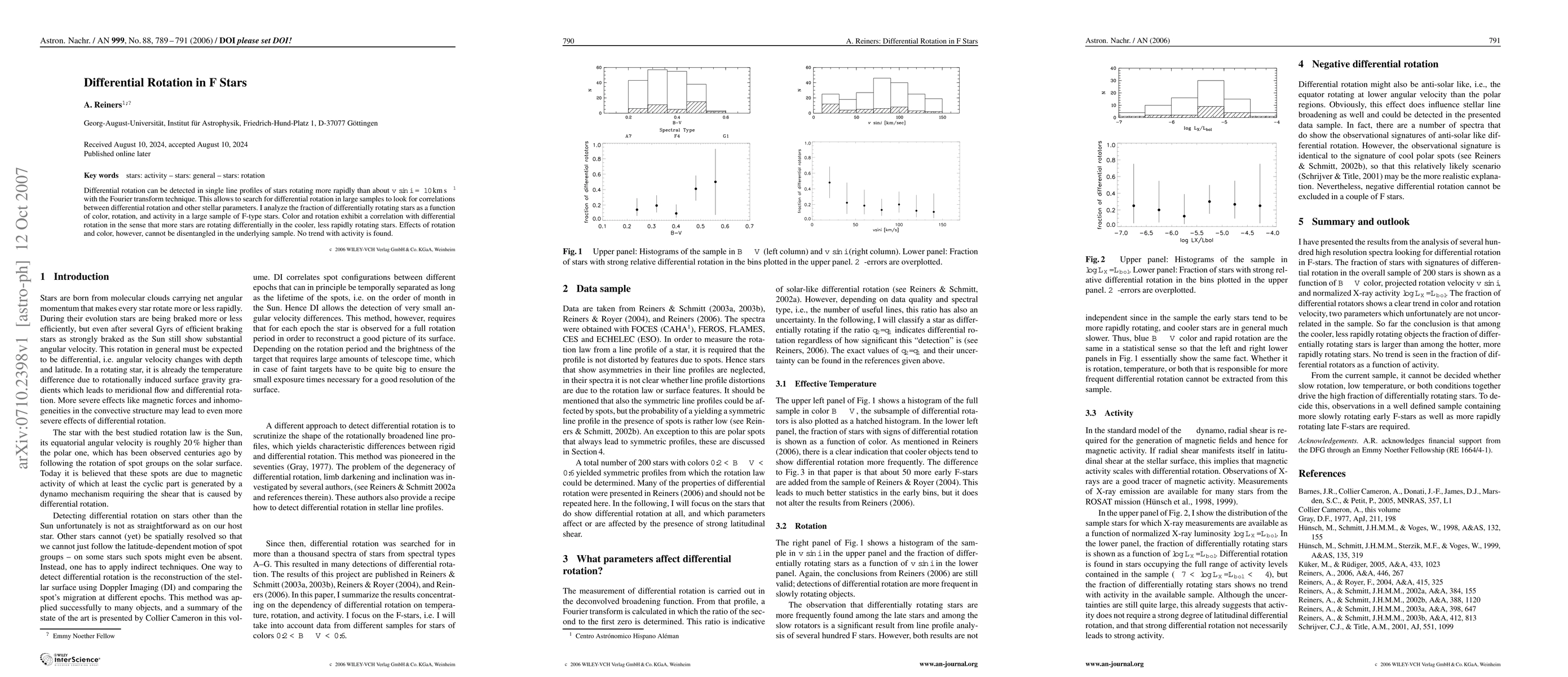 This study investigates differential rotation in F-type stars using Fourier transform techniques, finding that cooler, less rapidly rotating stars exhibit more differential rotation. No significant correlation with stellar activity is observed.