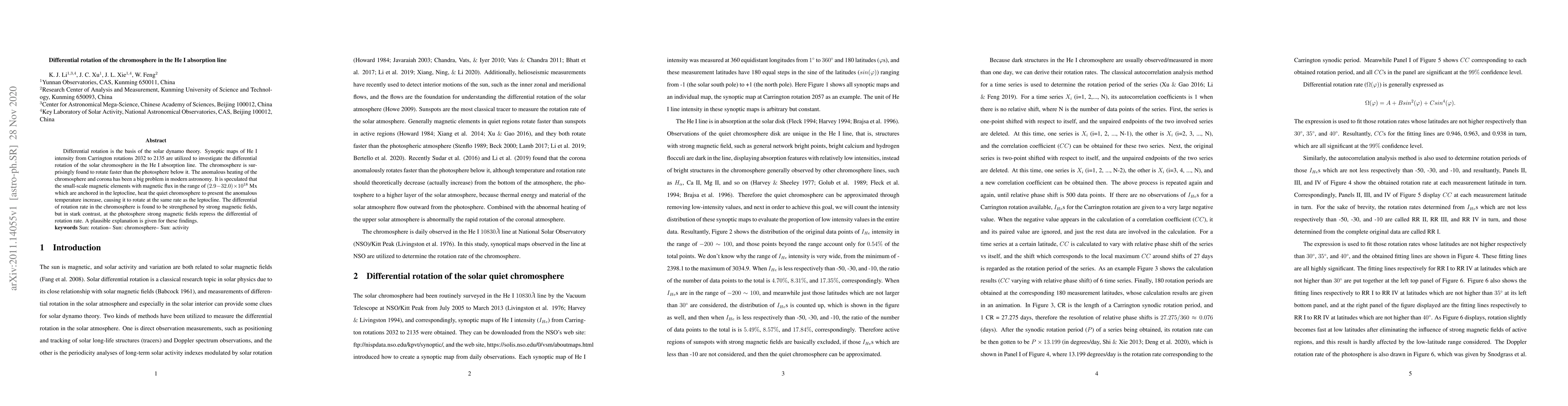 This study investigates the differential rotation of the solar chromosphere in the He I absorption line, finding that it rotates faster than the underlying photosphere. The findings suggest that small-scale magnetic elements anchored in the leptocline may heat the chromosphere, causing an anomalous temperature increase and faster rotation, with strong magnetic fields enhancing this effect in the chromosphere but repressing it in the photosphere.