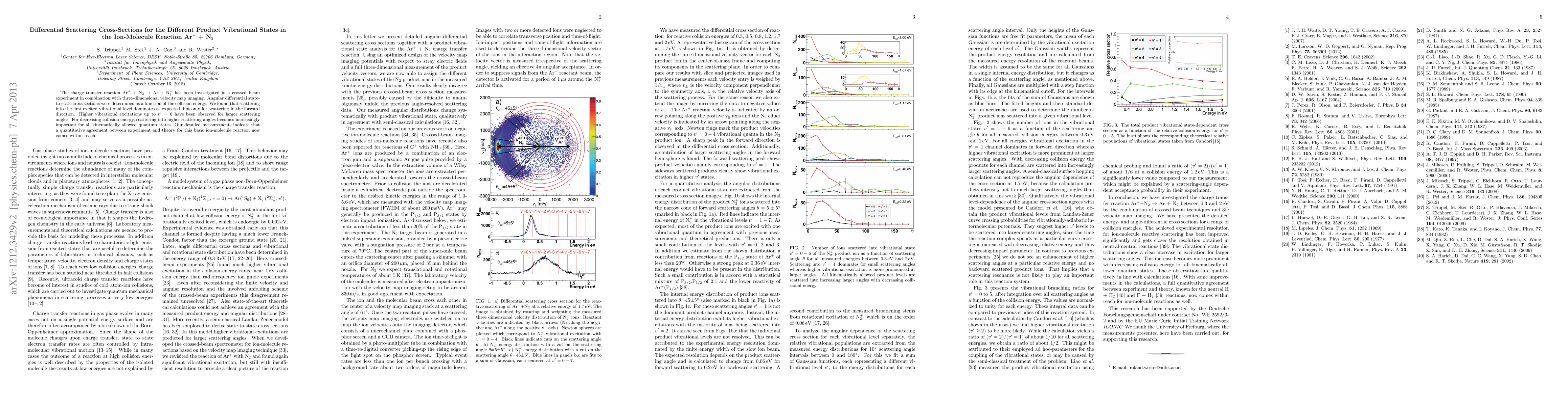 Researchers investigated the ion-molecule reaction Ar+ + N2 and found that scattering into higher vibrational levels becomes more important for larger scattering angles at lower collision energies.