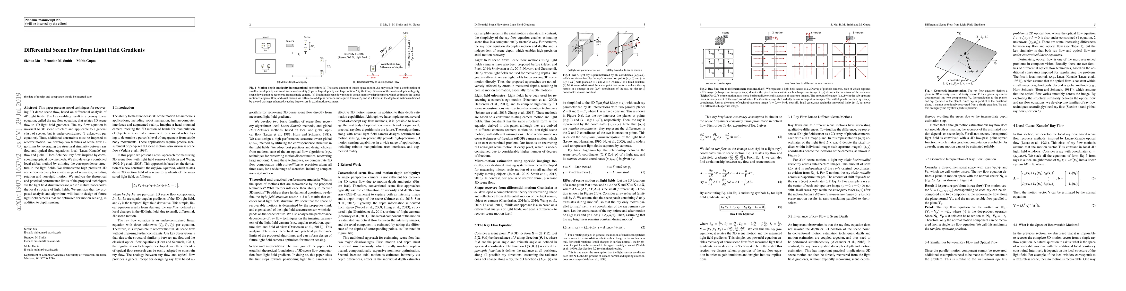 This paper introduces techniques for recovering 3D dense scene flow using differential analysis of 4D light fields, proposing a ray flow equation that relates scene flow to light field gradients, and developing local and global algorithms inspired by optical flow methods to address under-constrained solutions.