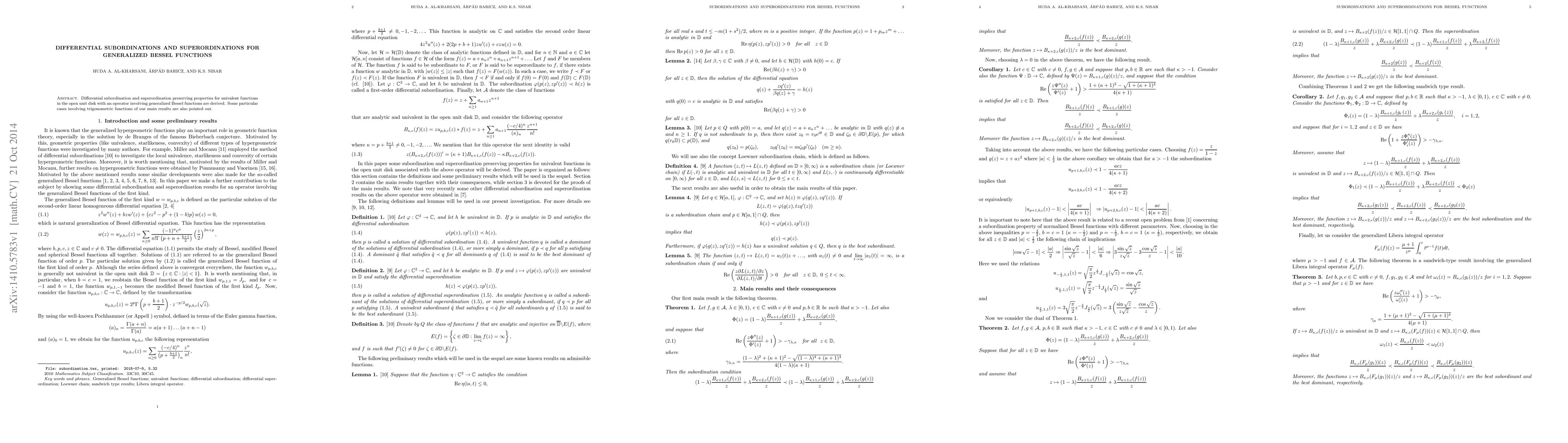 Summary: This paper derives differential subordination and superordination properties for univalent functions in the open unit disk using an operator involving generalized Bessel functions, and highlights special cases linked to trigonometric functions.