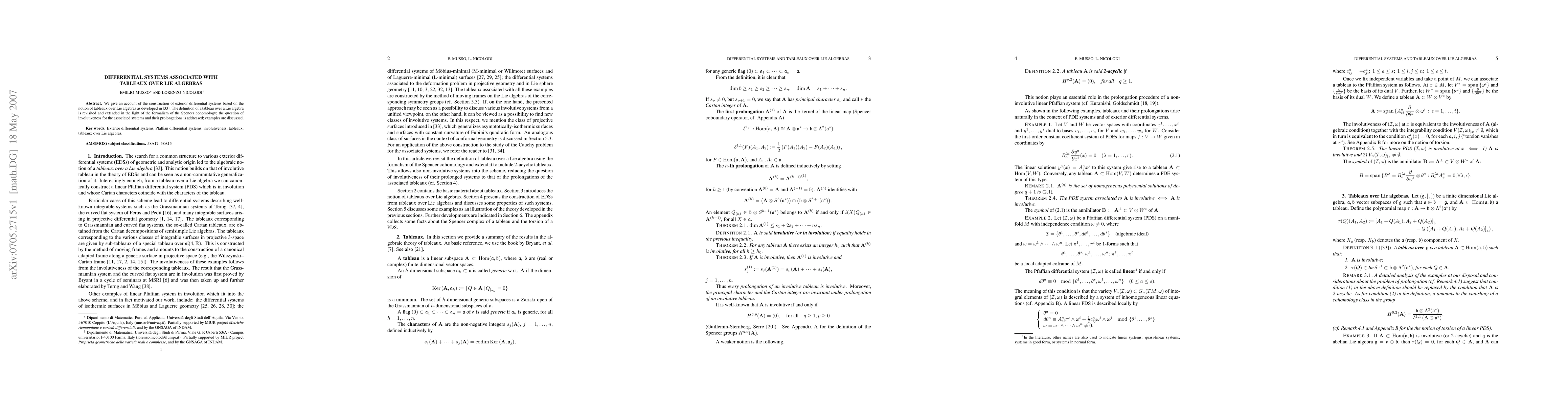We give an account of the construction of exterior differential systems based on the notion of tableaux over Lie algebras as developed in [Comm. Anal. Geom 14 (2006), 475-496; math.DG/0412169]. The definition of a tableau over a Lie algebra is revisited and extended in the light of the formalism of the Spencer cohomology; the question of involutiveness for the associated systems and their prolongations is addressed; examples are discussed.