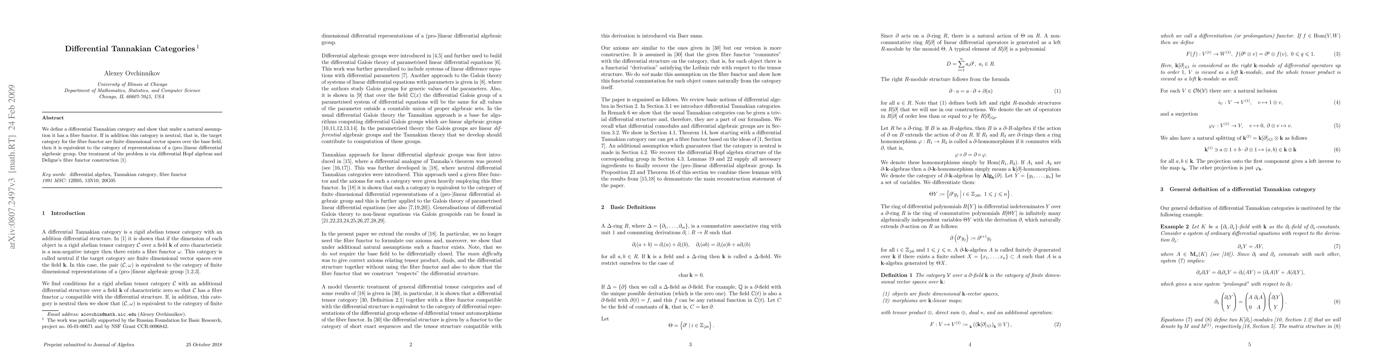 Researchers define a differential Tannakian category and show it can be equivalent to the category of representations of a (pro-)linear differential algebraic group under certain conditions, providing a new framework for studying such categories.