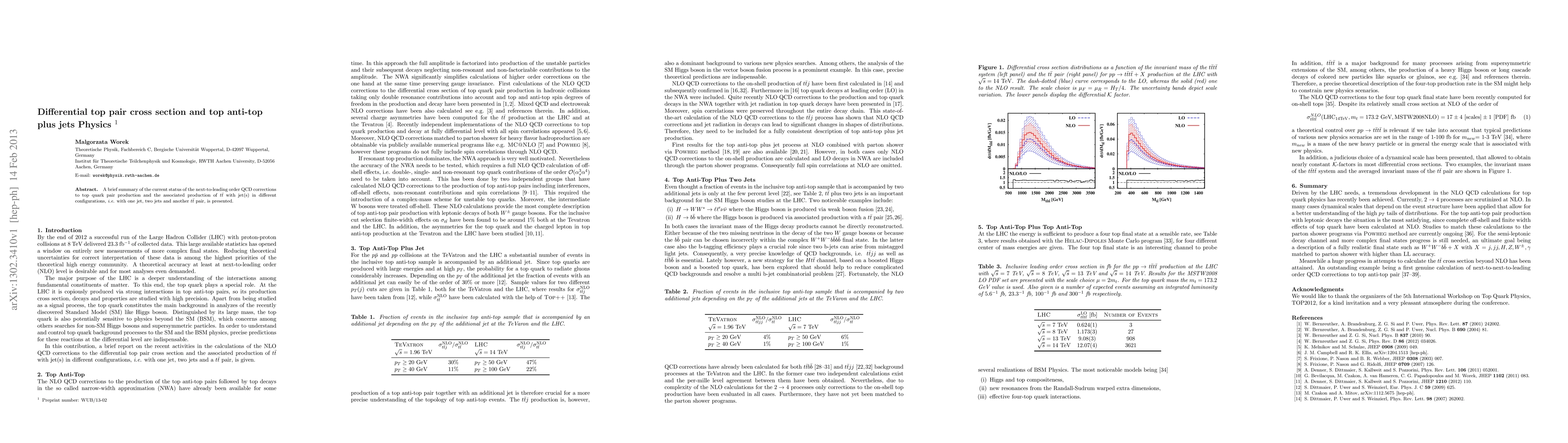 The paper presents a summary of next-to-leading order QCD corrections to top quark pair production and associated production of top anti-top with jets in various configurations, including one jet, two jets, and another top anti-top pair.