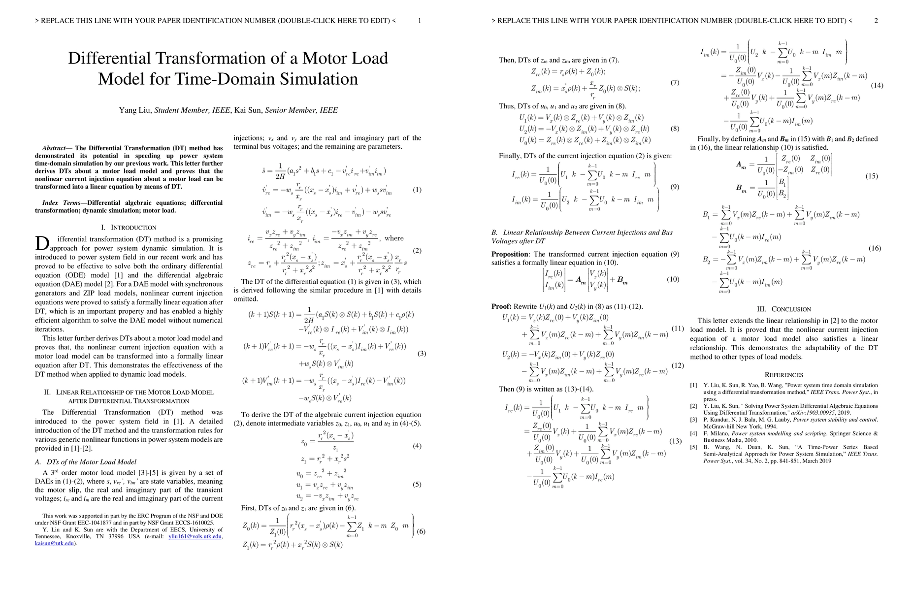 The Differential Transformation (DT) method has demonstrated its potential in speeding up power system time-domain simulation by our previous work. This letter further derives DTs about a motor load model and proves that the nonlinear current injection equation about a motor load can be transformed into a linear equation by means of DT.