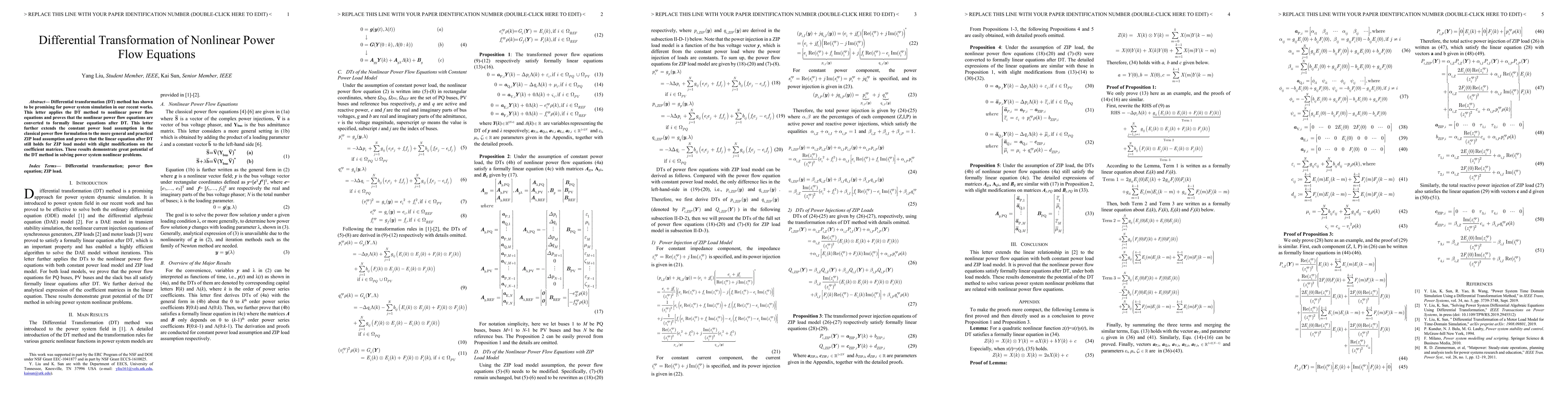 This paper applies the differential transformation (DT) method to convert nonlinear power flow equations into linear equations, demonstrating its effectiveness for power system simulation. The DT method is extended to the ZIP load model, showing that the linear equations still hold with minor modifications, thus highlighting the DT method's potential for solving complex power system nonlinear problems.