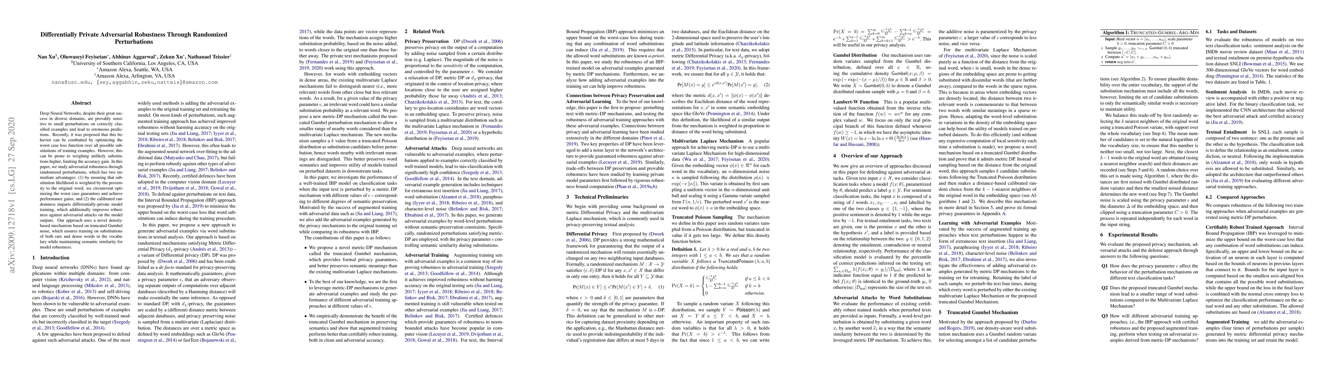 This paper proposes a method for enhancing adversarial robustness in deep neural networks using randomized perturbations. By weighting substitutions based on their proximity to original words, the approach avoids optimizing for unlikely substitutions and achieves better performance while maintaining differentially-private training through calibrated randomness.