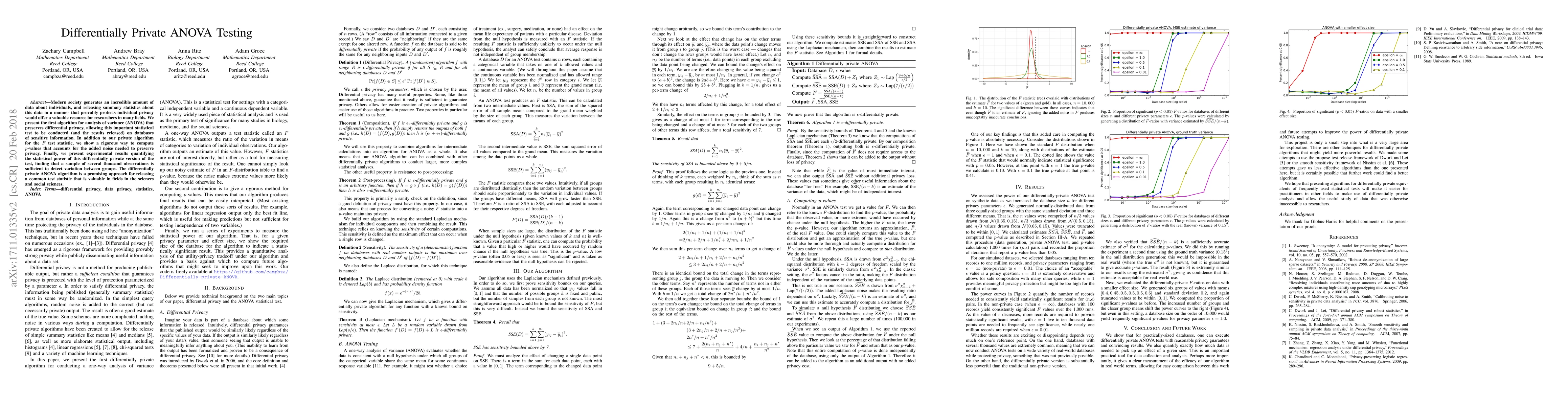 A new algorithm for ANOVA testing preserves individual privacy while still detecting variation between groups, with statistical power achievable through a sample of several thousand observations.