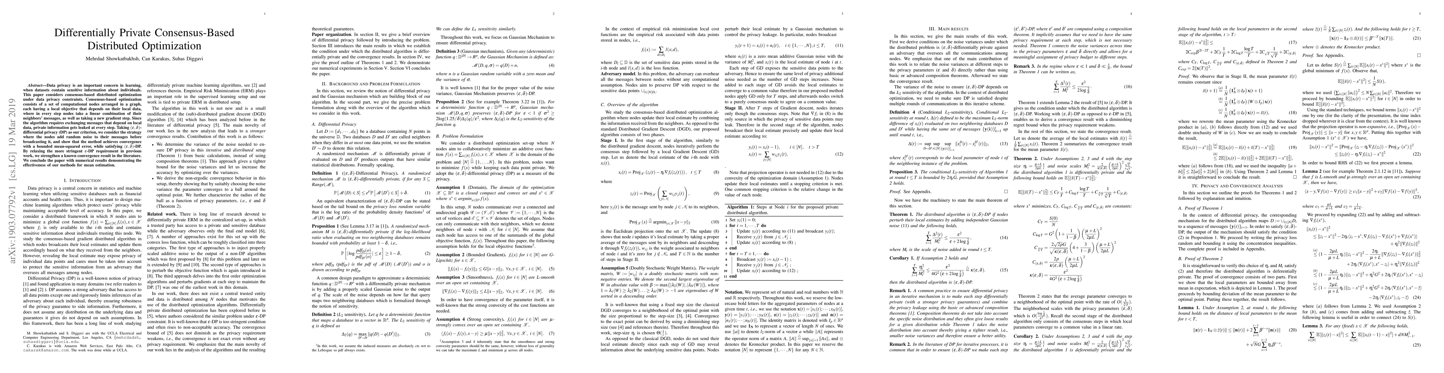 This paper develops a method for consensus-based distributed optimization under data privacy constraints, achieving convergence with bounded mean-squared error while ensuring differential privacy.