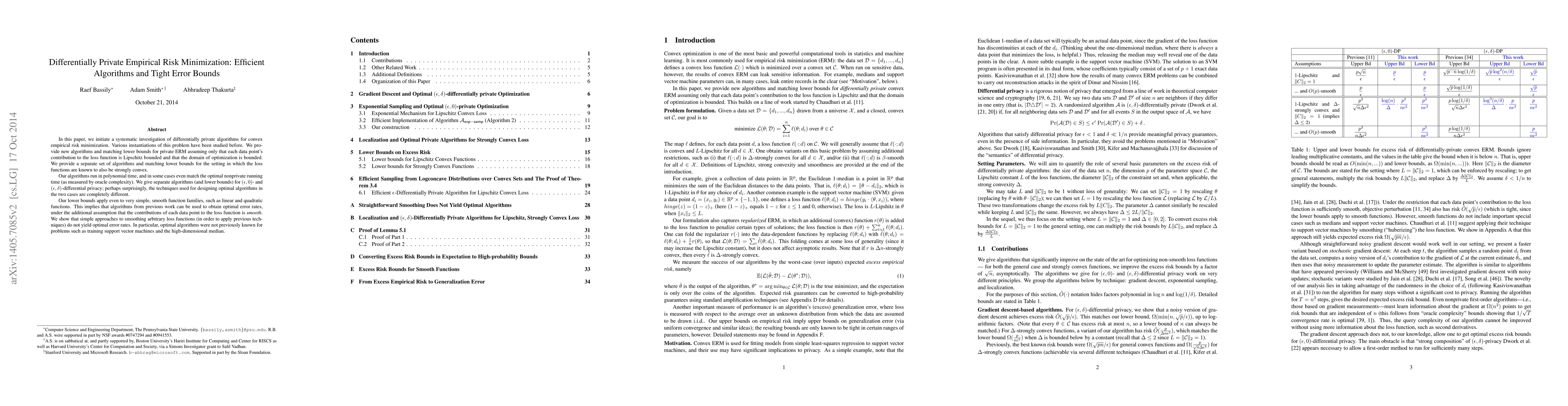 This paper develops new differentially private algorithms for convex empirical risk minimization, providing efficient algorithms and matching lower bounds under Lipschitz and strong convexity assumptions. It distinguishes between $(\epsilon,0)$- and $(\epsilon,\delta)$-differential privacy, revealing different optimal techniques for each.