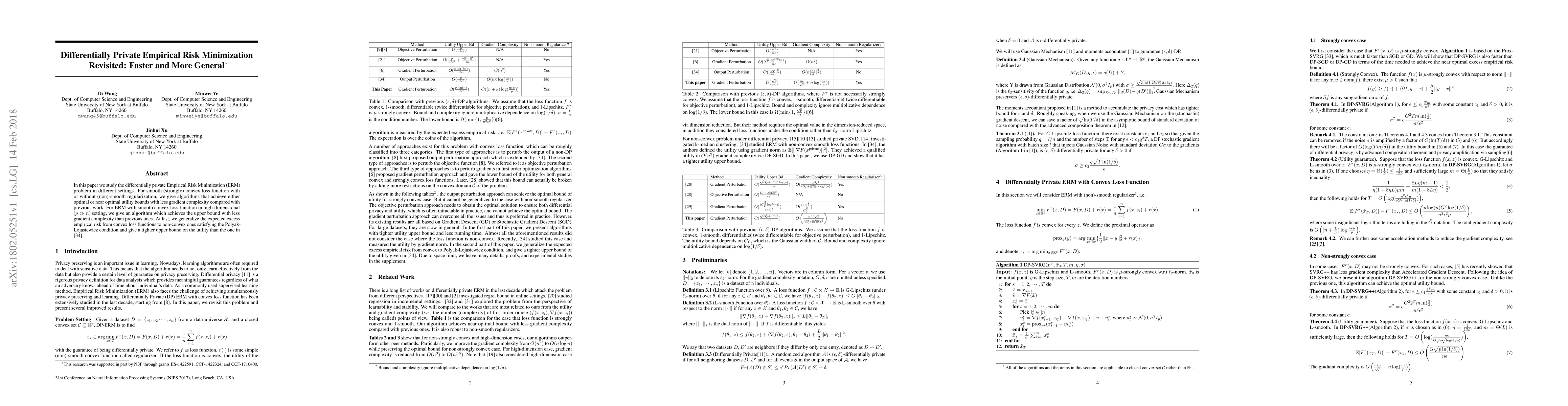 This paper presents improved algorithms for differentially private Empirical Risk Minimization (ERM) that achieve optimal or near-optimal utility bounds with reduced gradient complexity. The authors also extend the analysis to high-dimensional settings and generalize the expected excess empirical risk to non-convex loss functions under the Polyak-Lojasiewicz condition.