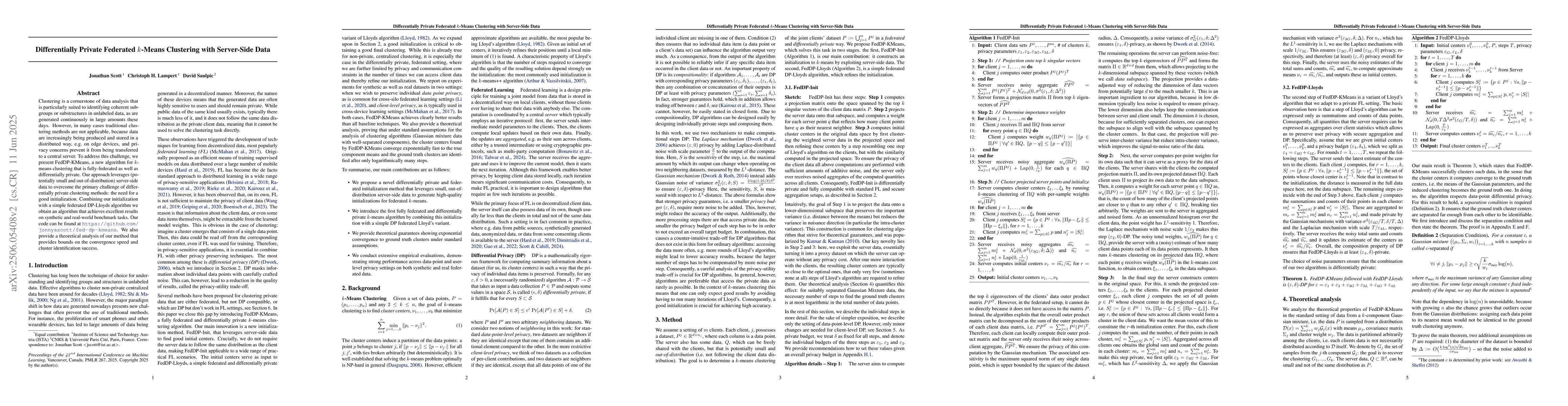 This paper presents a new algorithm for k-means clustering that is both fully-federated and differentially private, leveraging server-side data to overcome initialisation challenges and achieving excellent results on synthetic and real-world benchmark tasks.