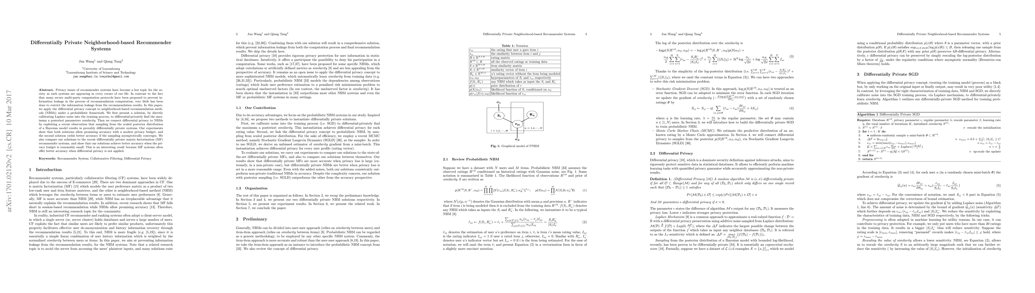 This paper introduces differentially private techniques for neighborhood-based recommender systems (NBMs) to mitigate information leakage, employing Laplace noise calibration and Bayesian model sampling. Experimental results indicate that these methods maintain promising accuracy under a modest privacy budget, outperforming differentially private matrix factorization recommenders when privacy is prioritized.