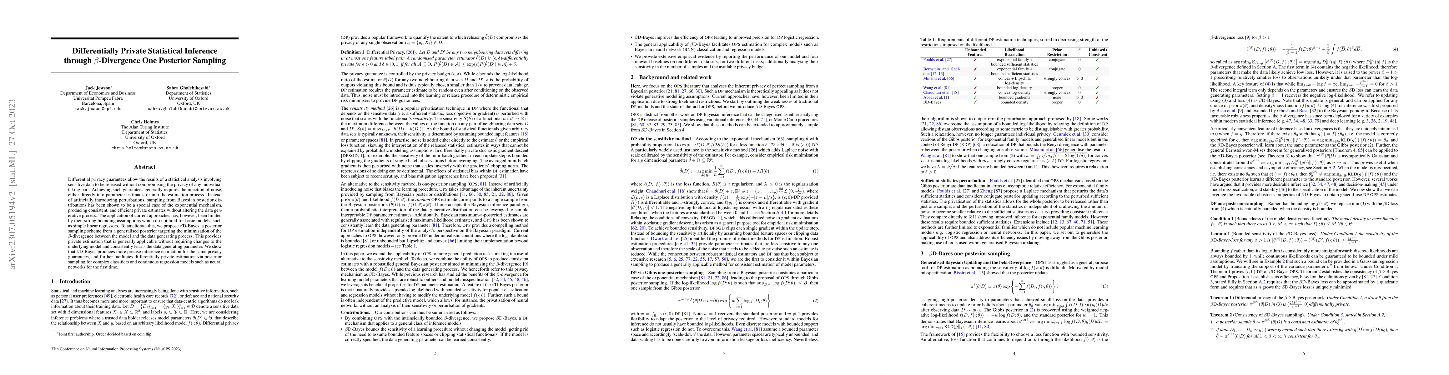 This paper proposes $\beta$D-Bayes, a novel posterior sampling scheme for differentially private statistical inference that minimizes the $\beta$-divergence, offering more precise estimates without altering the data generative process. This method extends applicability to complex models like neural networks, providing consistent and efficient private estimates.