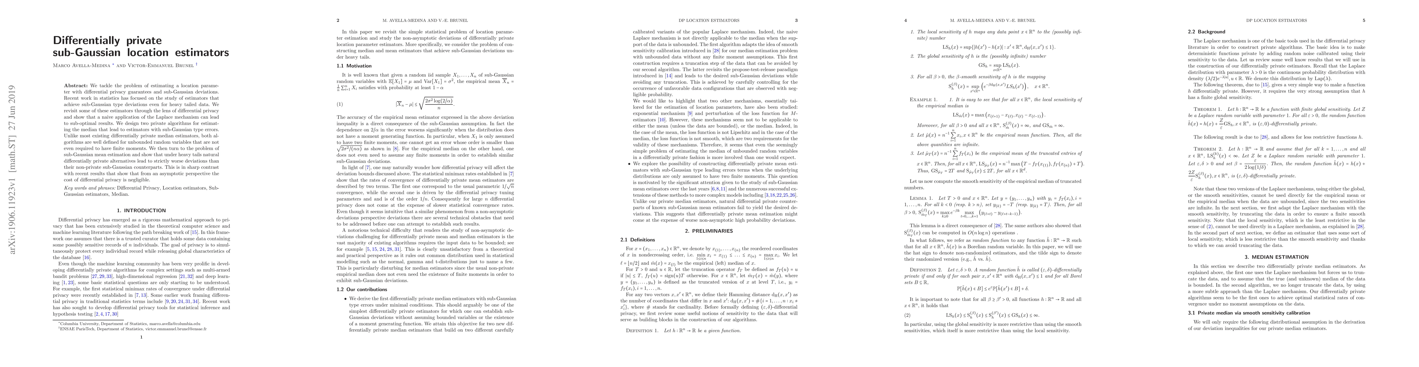 This paper designs two differentially private algorithms for estimating a location parameter with sub-Gaussian errors, showing improved performance over the naive Laplace mechanism. The proposed estimators handle unbounded random variables without finite moments, contrasting with existing methods.