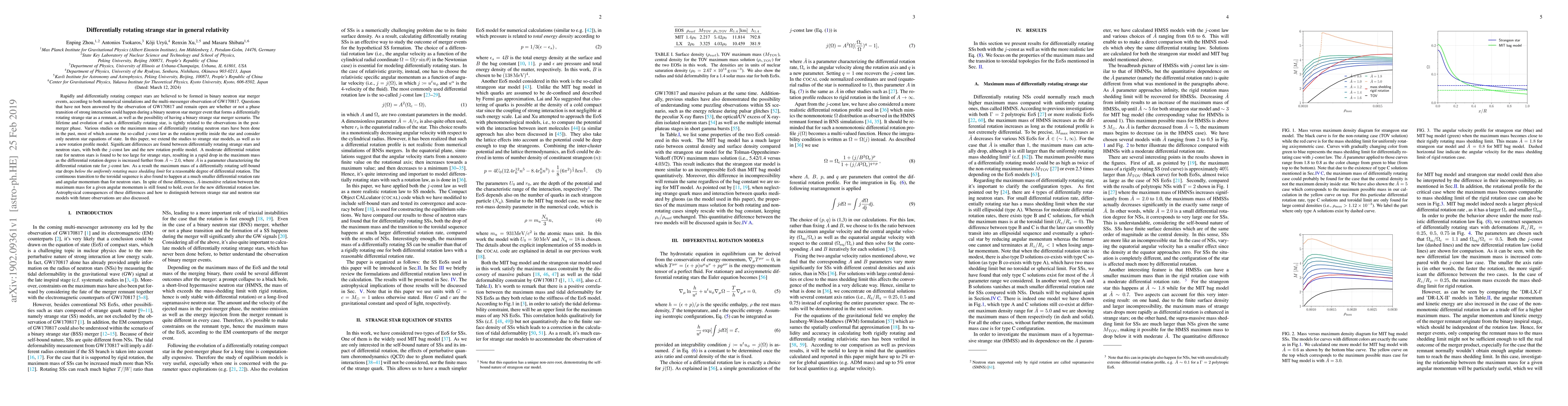 This paper investigates the properties of differentially rotating strange stars compared to neutron stars, finding significant differences in their maximum mass and stability under differential rotation. The study reveals that moderate differential rotation for neutron stars is too extreme for strange stars, leading to a rapid decrease in maximum mass and a transition to the toroidal sequence at lower rotation rates.