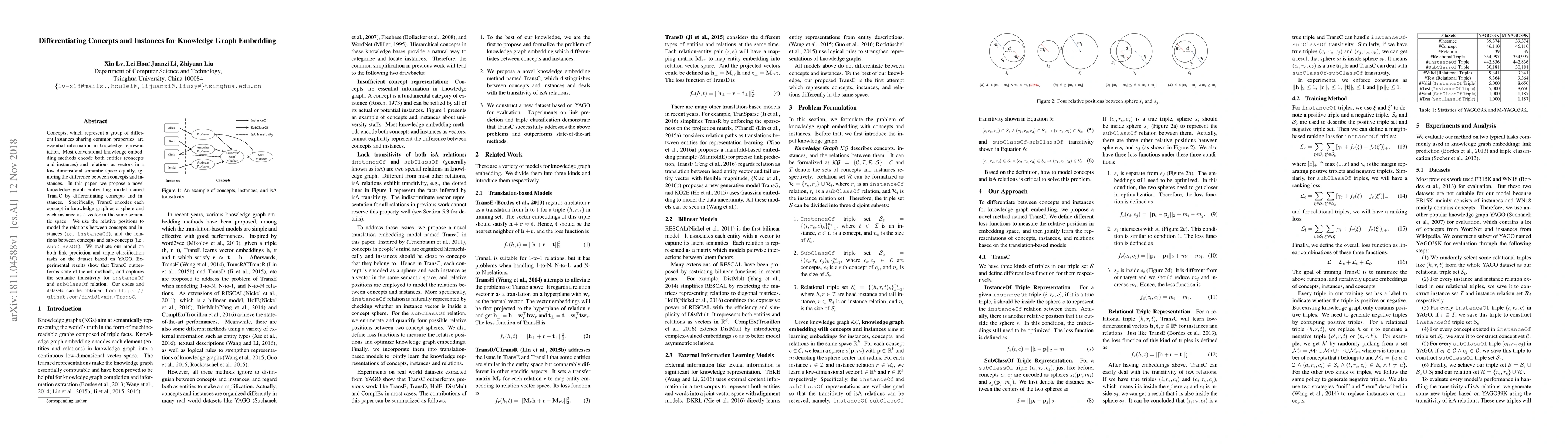 This paper introduces TransC, a novel knowledge graph embedding model that differentiates between concepts and instances by encoding concepts as spheres and instances as vectors in a shared semantic space. TransC outperforms existing methods in link prediction and triple classification, demonstrating improved semantic transitivity.