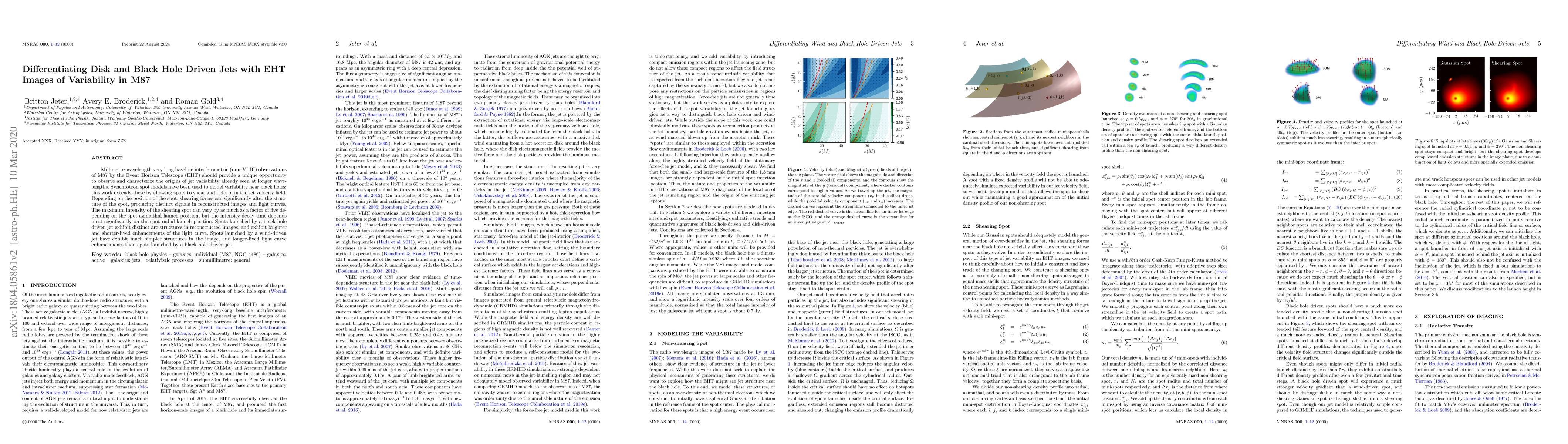 Millimetre-wavelength very long baseline interferometric (mm-VLBI) observations of M87 by the Event Horizon Telescope (EHT) should provide a unique opportunity to observe and characterize the origins of jet variability already seen at longer wavelengths. Synchrotron spot models have been used to model variability near black holes; this work extends these by allowing spots to shear and deform in the jet velocity field. Depending on the position of the spot, shearing forces can significantly alter the structure of the spot, producing distinct signals in reconstructed images and light curves. The maximum intensity of the shearing spot can vary by as much as a factor of five depending on the spot azimuthal launch position, but the intensity decay time depends most significantly on the spot radial launch position. Spots launched by a black hole driven jet exhibit distinct arc structures in reconstructed images, and exhibit brighter and shorter-lived enhancements of the light curve. Spots launched by a wind-driven jet have exhibit much simpler structures in the image, and longer-lived light curve enhancements than spots launched by a black hole driven jet.