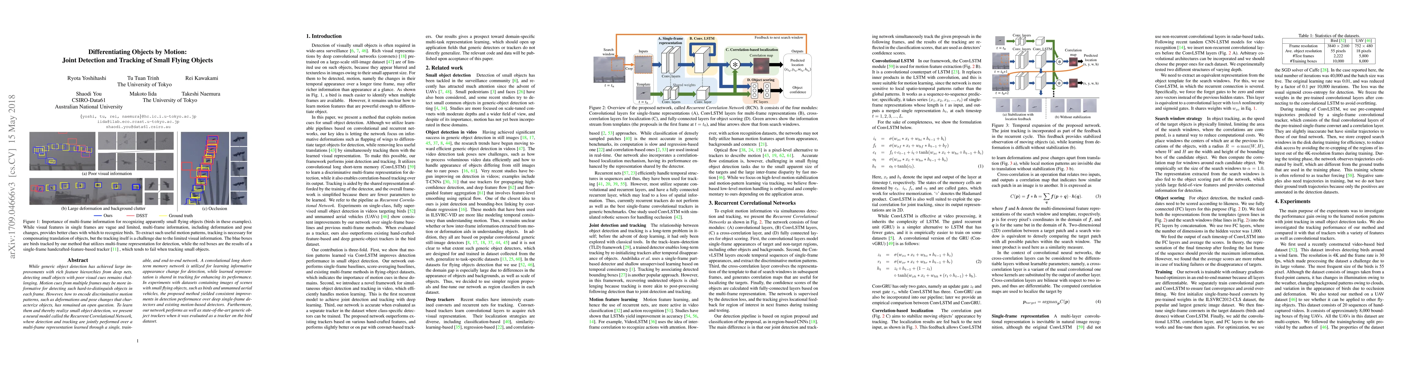 This paper presents a Recurrent Correlational Network for joint detection and tracking of small flying objects using motion cues across multiple frames. The model combines convolutional long short-term memory networks to learn discriminative motion patterns, achieving better detection performance compared to single-frame detectors and existing motion-based methods.