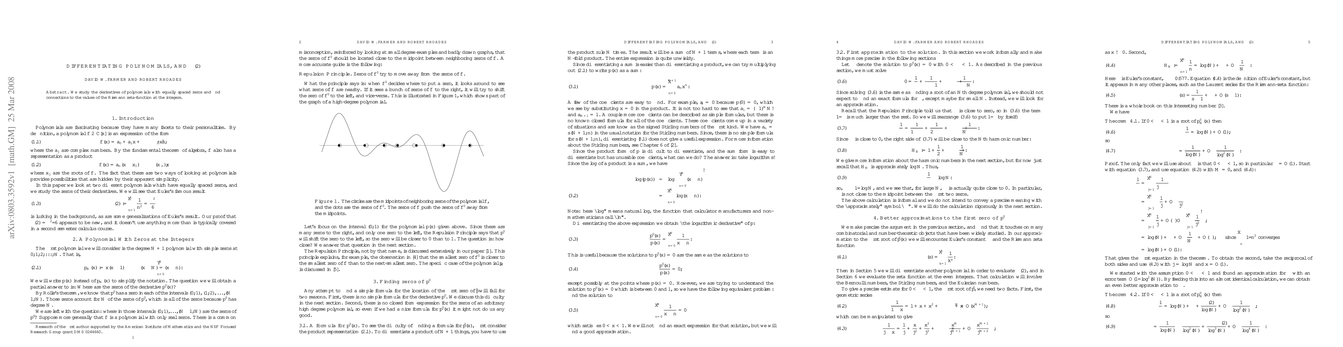 We study the derivatives of polynomials with equally spaced zeros and find connections to the values of the Riemann zeta-function at the positive even integers.