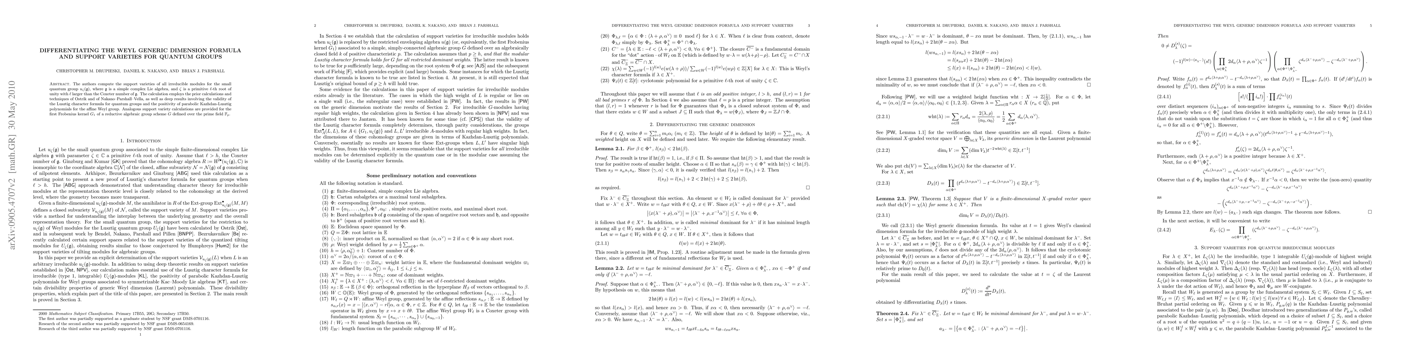 This paper computes support varieties for irreducible modules of small quantum groups and their Frobenius kernels, leveraging techniques from Ostrik and Nakano-Parshall-Vella, and deep results on Lusztig character formulas and parabolic Kazhdan-Lusztig polynomials. The findings differentiate the Weyl generic dimension formula and support varieties for these quantum groups.
