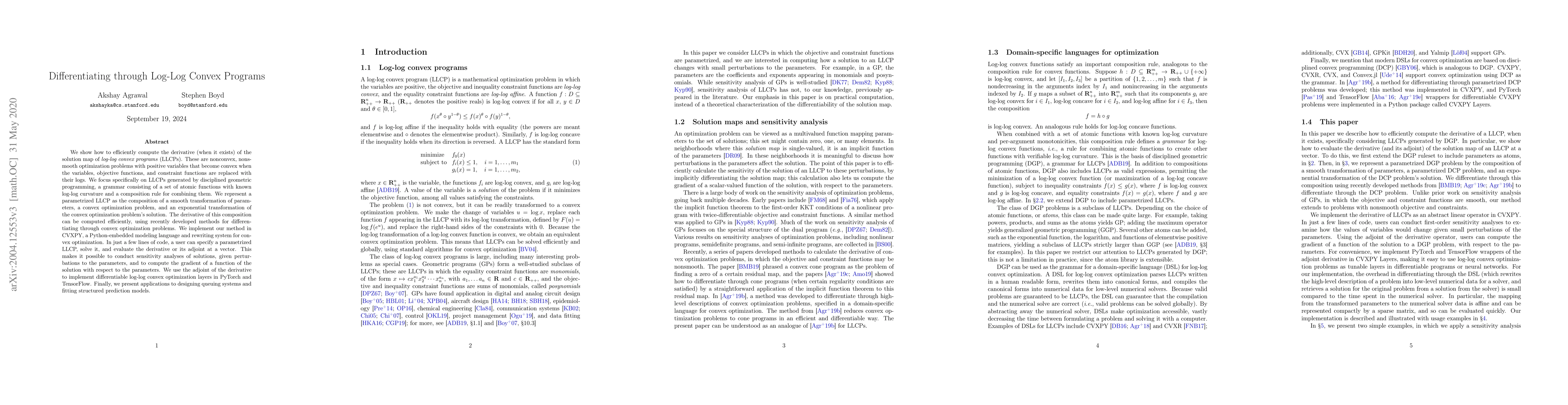 Researchers developed a method to efficiently compute derivatives of log-log convex programs, enabling sensitivity analysis and differentiable optimization layers for applications like queuing systems and structured prediction models.