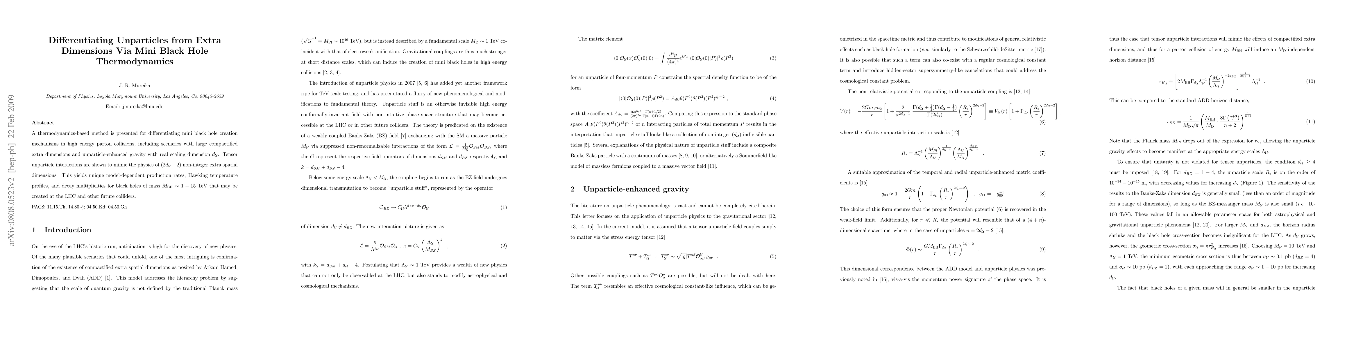 A simple method for differentiating two similar accelerator-based black hole creation mechanisms -- compactified extra dimensions and unparticle-enhanced gravity -- is discussed, in light of several properties of black hole thermodynamics. The real-valued scaling dimension $\du$ will induce interactions that mimic those in a universe with $(2\du-2)$-extra spatial dimensions, and thus provides an alternative mechanism for black hole creation at the LHC within the confines of standard 4D general relativity. This results in mass-dependent Hawking temperature profiles that depend primarily on $\du$, yielding an evaporation signature unique to the framework. Specifically, a precision reconstruction of the Hawking temperature spectrum morphology for black holes of mass $\Mbh$ yields conclusive evidence of one mechanism over the other, due to the presence of additional adjustable parameters in the unparticle sector.
