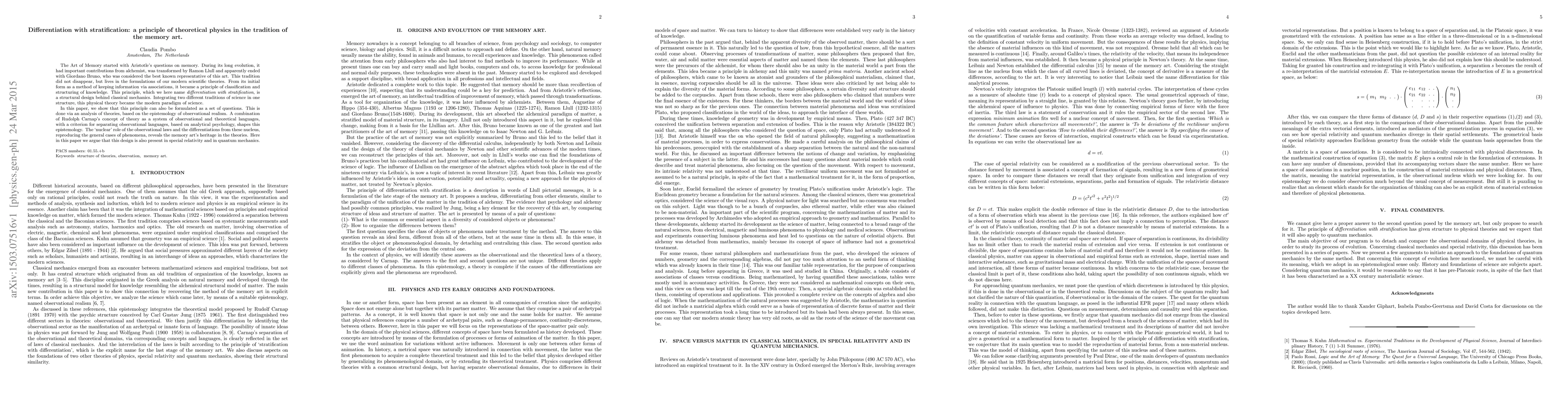 This paper explores the principle of "differentiation with stratification" as a foundational concept in theoretical physics, tracing its roots from the Art of Memory tradition. It argues that this principle, which structures knowledge through classification, underpins classical mechanics, special relativity, and quantum mechanics, revealing a deep connection between historical memory techniques and modern scientific paradigms.