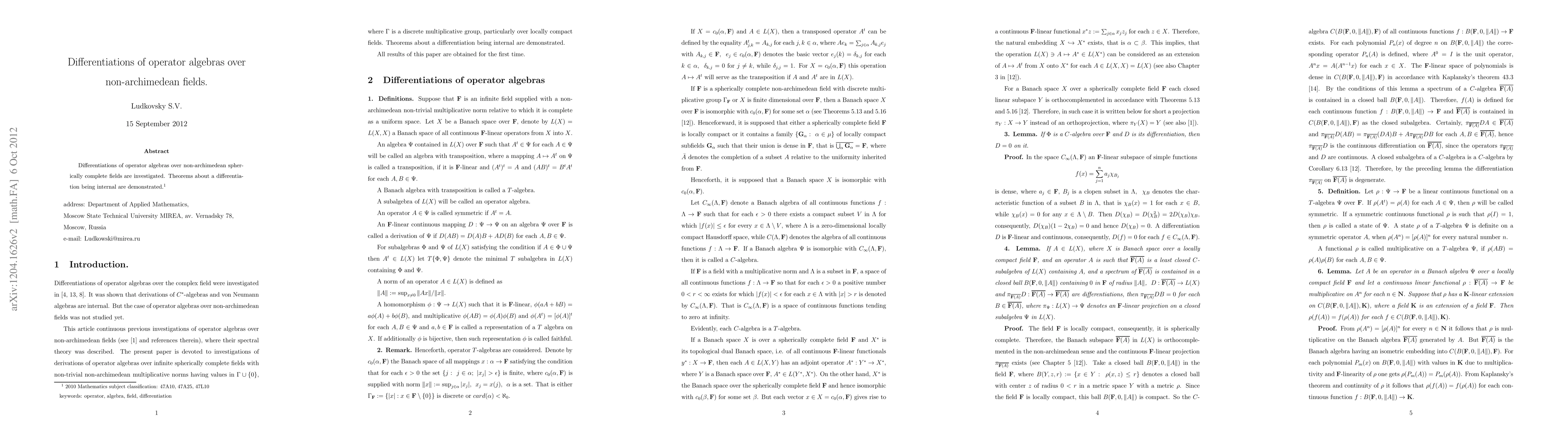 Summary: This paper explores the differentiations of operator algebras over non-archimedean spherically complete fields, proving theorems that establish the internal nature of these differentiations.