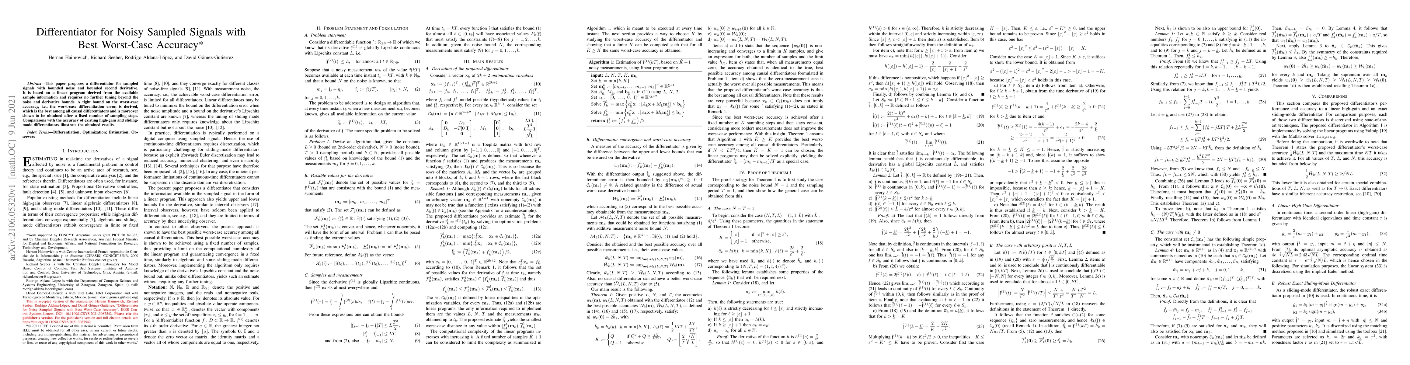 This paper proposes a differentiator for noisy sampled signals that achieves the best worst-case accuracy with no additional tuning required. It outperforms existing high-gain and sliding-mode differentiators in terms of accuracy.