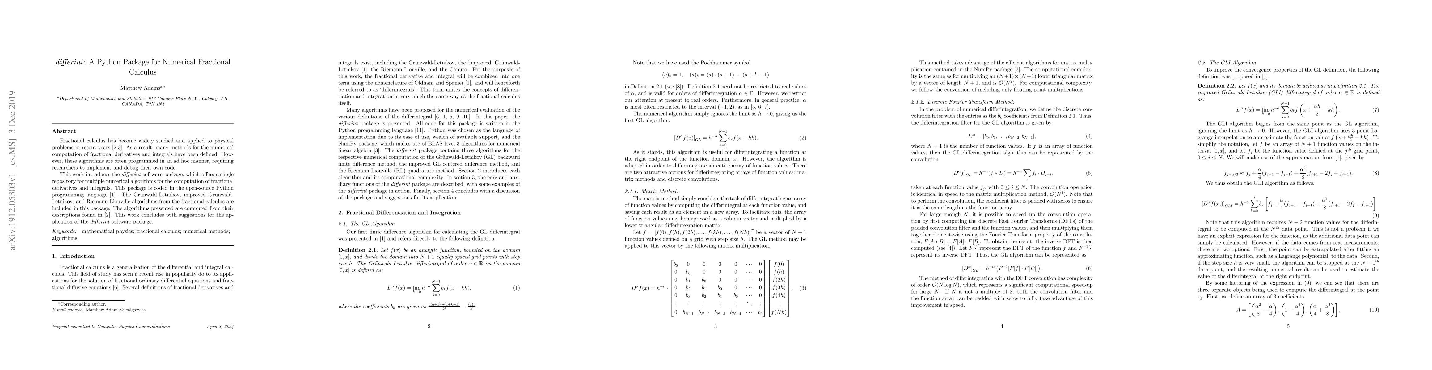 The \textit{differint} Python package provides a unified repository for multiple numerical algorithms to compute fractional derivatives and integrals, including the Grünwald-Letnikov, improved Grünwald-Letnikov, and Riemann-Liouville methods, facilitating easier implementation and debugging for researchers.