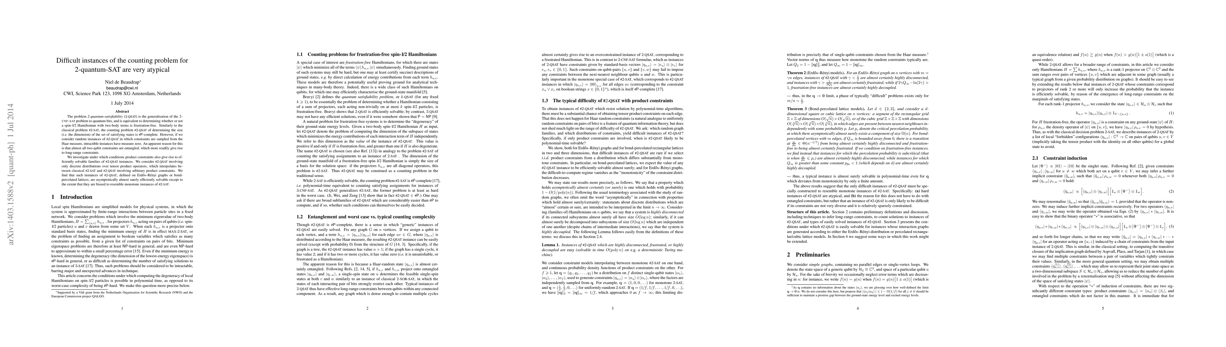 The paper demonstrates that difficult instances of the counting problem for 2-quantum-SAT are rare and typically arise due to entanglement in constraints. It finds that product constraints in #2-QSAT lead to efficiently solvable instances, except when they resemble monotone #2-SAT.