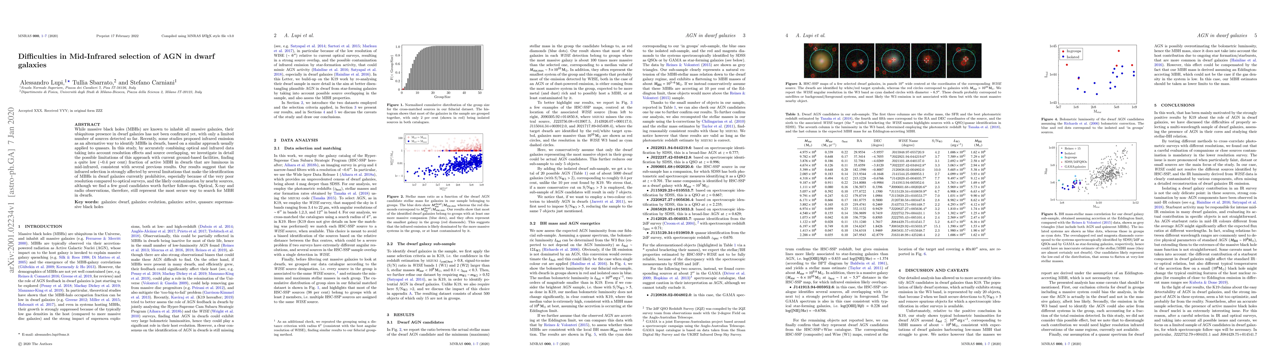 A study found that mid-infrared selection of active galactic nuclei (AGN) in dwarf galaxies is limited due to poor resolution and contamination from nearby sources, making optical observations the most secure way to search for AGN in these galaxies.