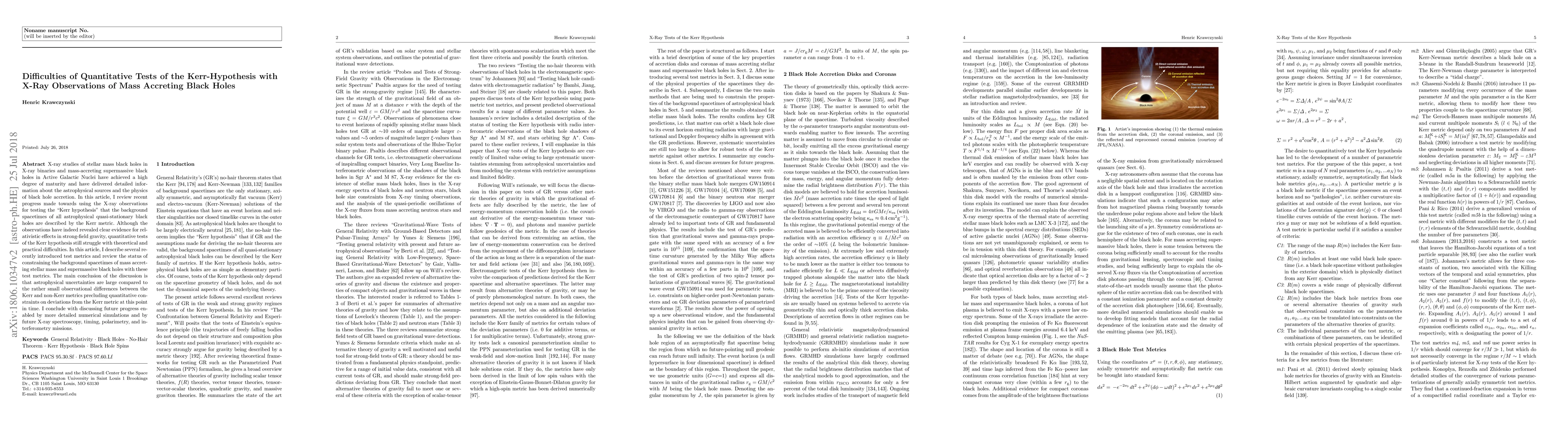 This paper reviews challenges in quantitatively testing the Kerr hypothesis using X-ray observations of black holes, noting that while evidence for relativistic effects is clear, large astrophysical uncertainties hinder precise constraints on deviations from the Kerr metric. Future improvements in simulations and advanced X-ray technologies are suggested to overcome current limitations.