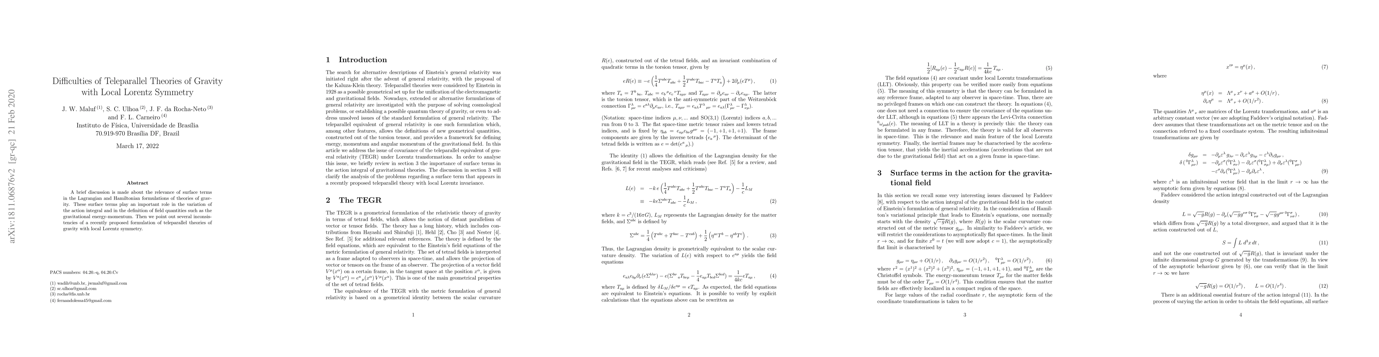 A brief discussion is made about the relevance of surface terms in the Lagrangian and Hamiltonian formulations of theories of gravity. These surface terms play an important role in the variation of the action integral and in the definition of field quantities such as the gravitational energy-momentum. Then we point out several inconsistencies of a recently proposed formulation of teleparallel theories of gravity with local Lorentz symmetry.