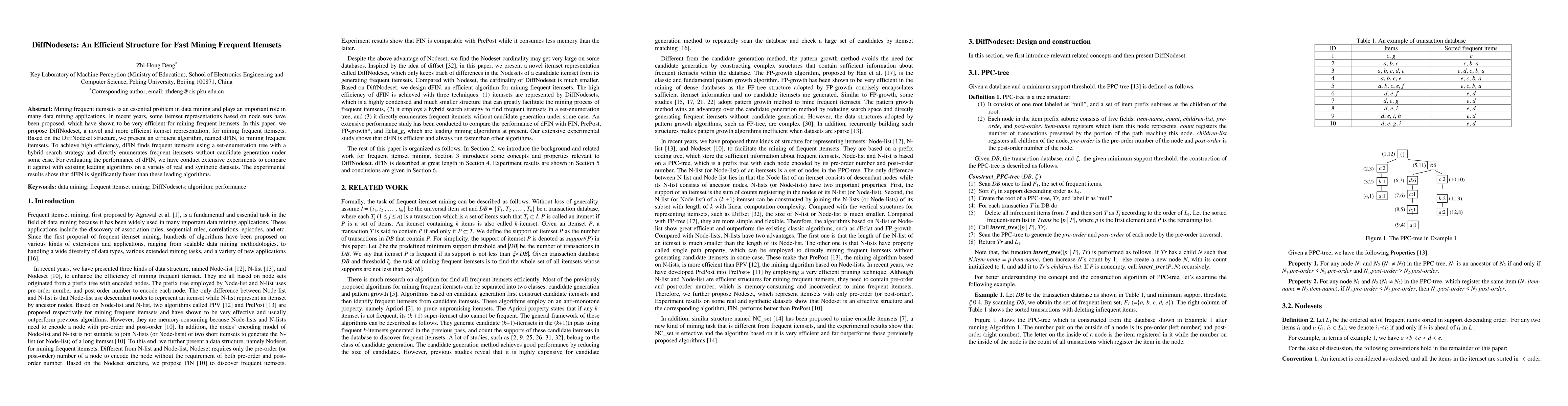 This paper introduces DiffNodeset, an efficient itemset representation for mining frequent itemsets, and presents dFIN, an algorithm that leverages this structure for fast frequent itemset mining. Experimental results demonstrate that dFIN outperforms existing leading algorithms in speed across various datasets.