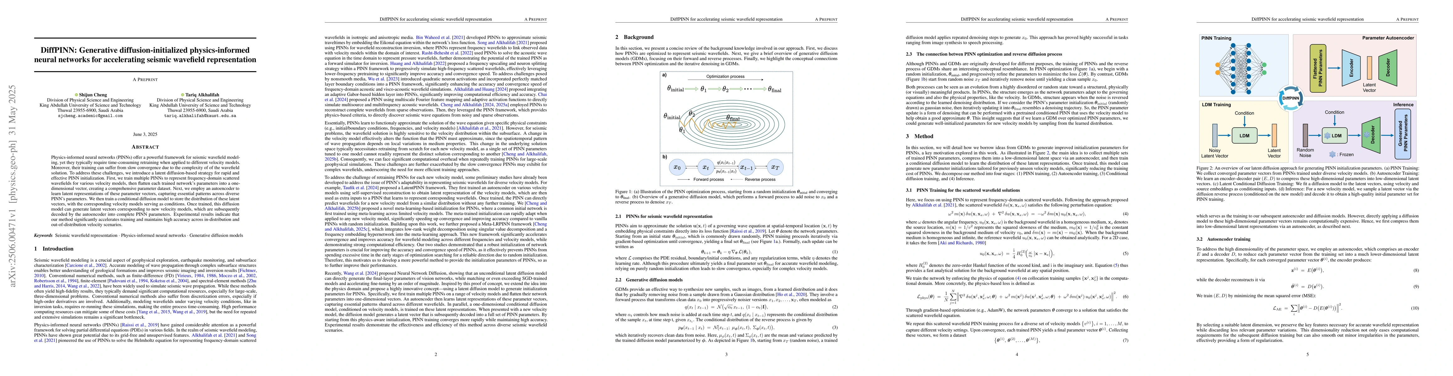 A new method called DiffPINN accelerates seismic wavefield representation using a latent diffusion-based strategy that enables fast initialization of physics-informed neural networks, improving training speed and accuracy.