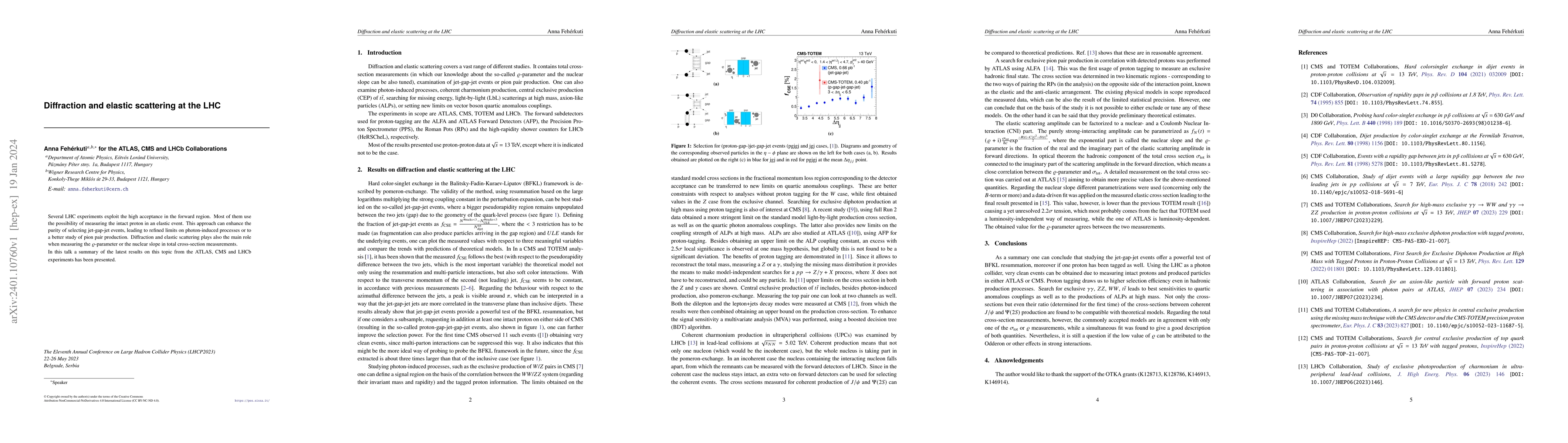 Several LHC experiments exploit the high acceptance in the forward region. Most of them use the possibility of measuring the intact proton in an elastic event. This approach can enhance the purity of selecting jet-gap-jet events, leading to refined limits on photon-induced processes or to a better study of pion pair production. Diffraction and elastic scattering plays also the main role when measuring the rho-parameter or the nuclear slope in total cross-section measurements. In this talk a summary of the latest results on this topic from the ATLAS, CMS and LHCb experiments has been presented.
