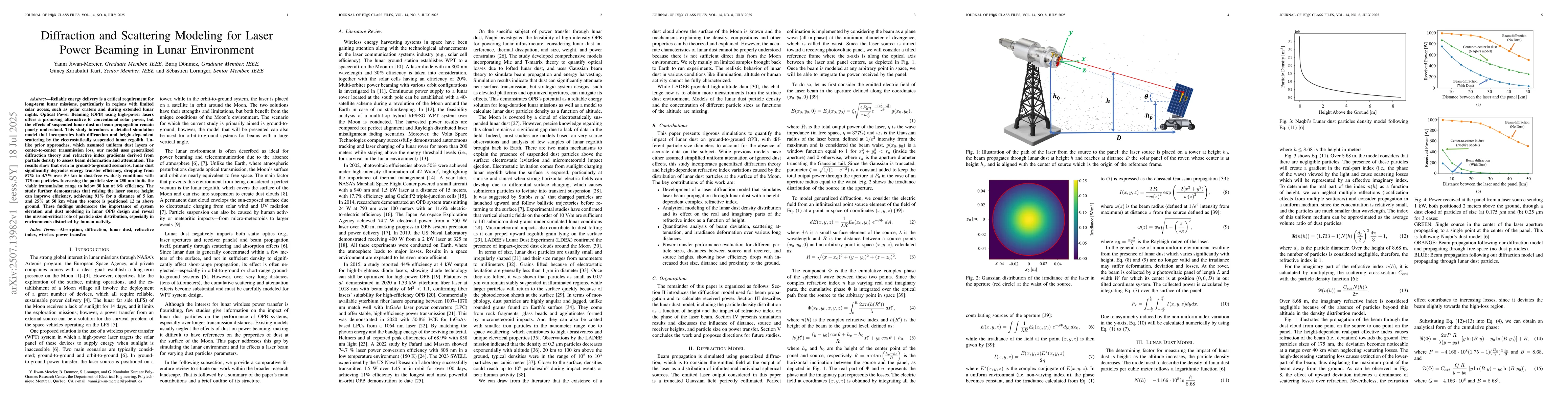 Reliable energy delivery is a critical requirement for long-term lunar missions, particularly in regions with limited solar access, such as polar craters and during extended lunar nights. Optical Power Beaming (OPB) using high-power lasers offers a promising alternative to conventional solar power, but the effects of suspended lunar dust on beam propagation remain poorly understood. This study introduces a detailed simulation model that incorporates both diffraction and height-dependent scattering by the electrostatically suspended lunar regolith. Un like prior approaches, which assumed uniform dust layers or center-to-center transmission loss, our model uses generalized diffraction theory and refractive index gradients derived from particle density to assess beam deformation and attenuation. The results show that even in ground-to-ground scenarios, lunar dust significantly degrades energy transfer efficiency, dropping from 57% to 3.7% over 50 km in dust-free vs. dusty conditions with 175 nm particles. Increasing the particle size to 250 nm limits the viable transmission range to below 30 km at 6% efficiency. The study further demonstrates that raising the laser source height can improve efficiency, achieving 91% for a distance of 5 km and 25% at 50 km when the source is positioned 12 m above ground. These findings underscore the importance of system elevation and dust modeling in lunar OPB design and reveal the mission-critical role of particle size distribution, especially in environments disturbed by human activity.