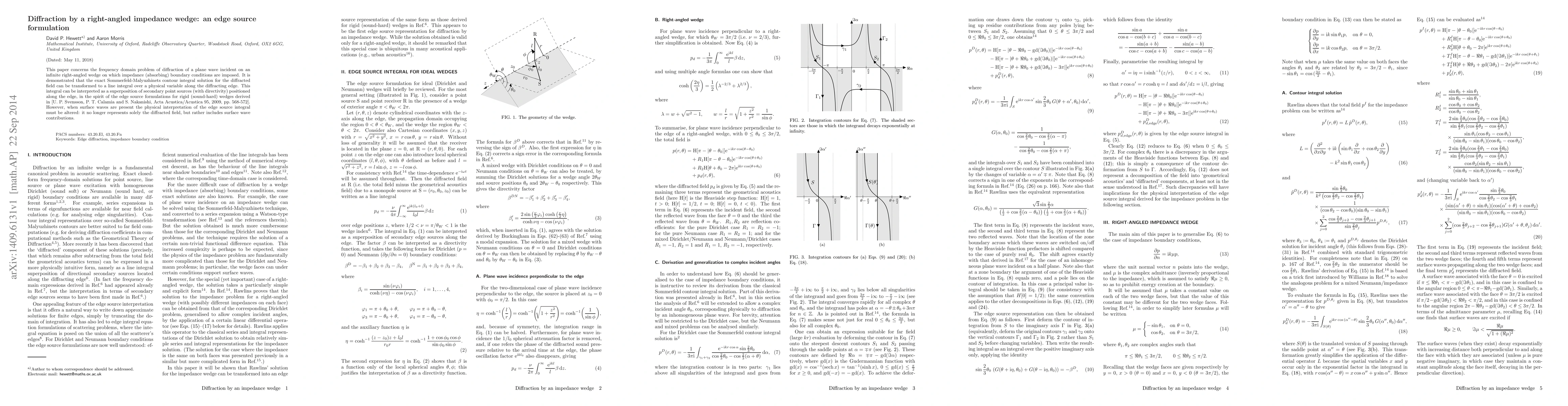 The paper presents an innovative edge source formulation for diffraction by a right-angled impedance wedge, transforming the contour integral solution into a line integral along the diffracting edge.