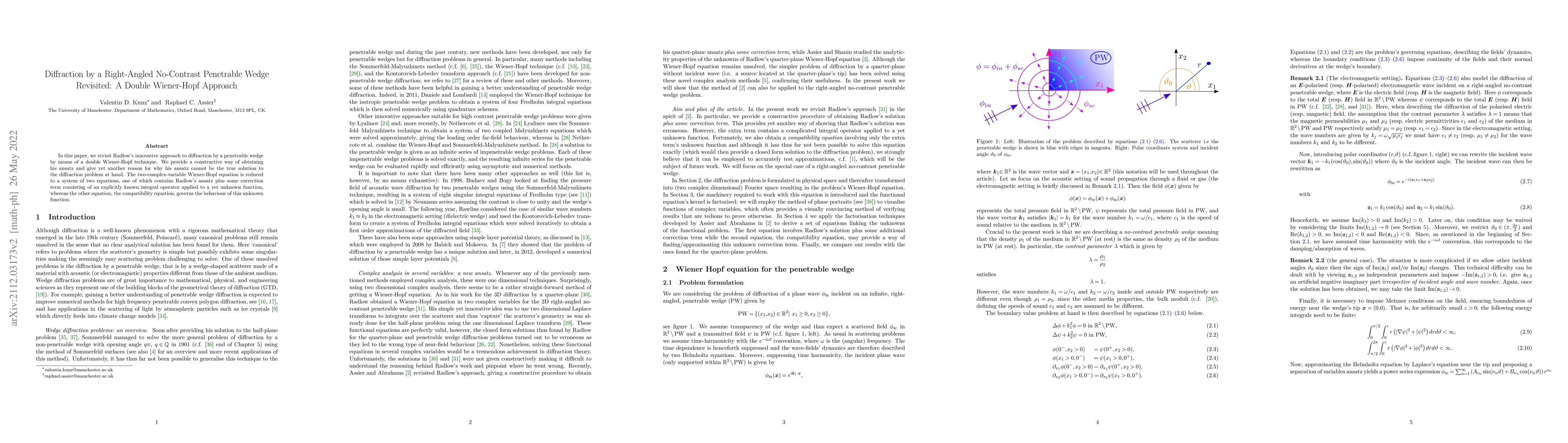 Raphael C. Assier, Valentin D. Kunz