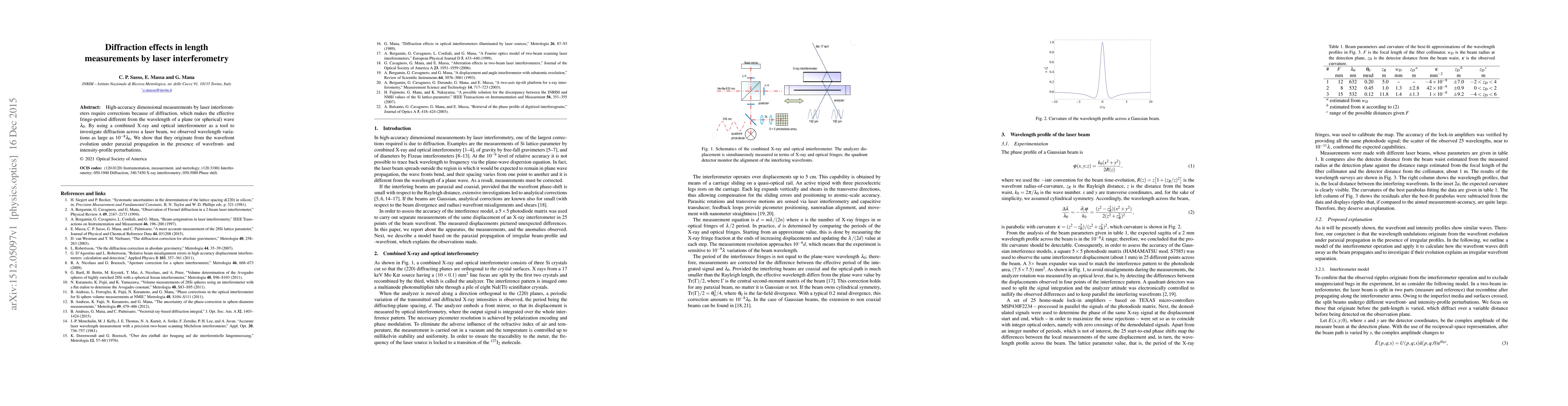 This research investigates diffraction effects on laser interferometry measurements, observing wavelength variations up to $10^{-8}lambda_0$. The study uses a combined X-ray and optical interferometer, revealing that these variations stem from wavefront evolution under paraxial propagation with perturbations in wavefront and intensity profiles.