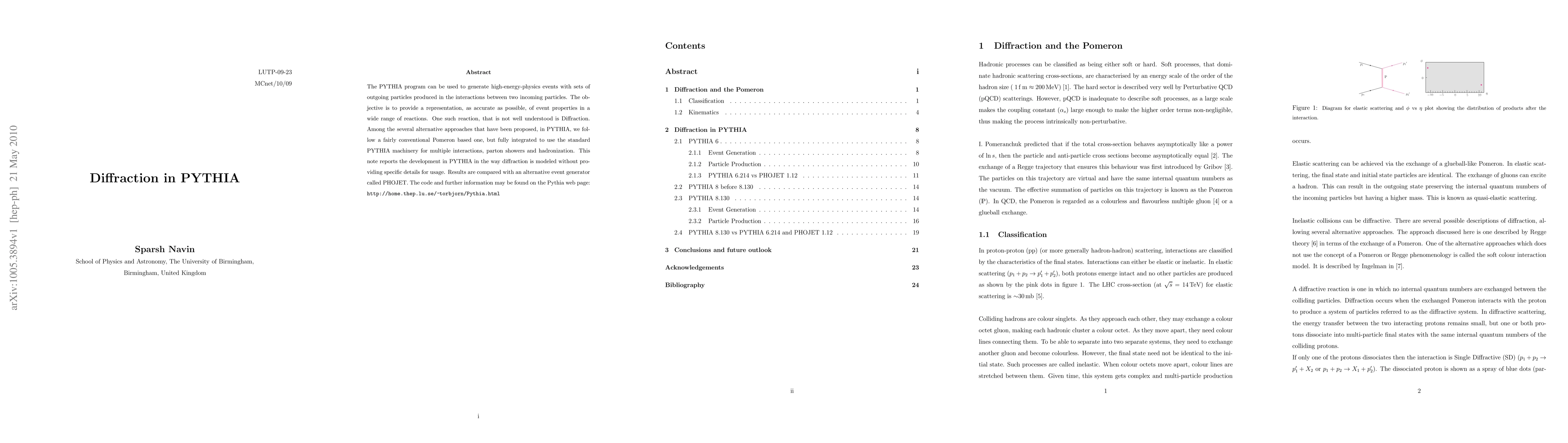 This paper discusses the implementation of diffraction modeling in the PYTHIA program, focusing on a Pomeron-based approach integrated with PYTHIA's standard features. It compares PYTHIA's results with those from PHOJET without delving into specific usage details.