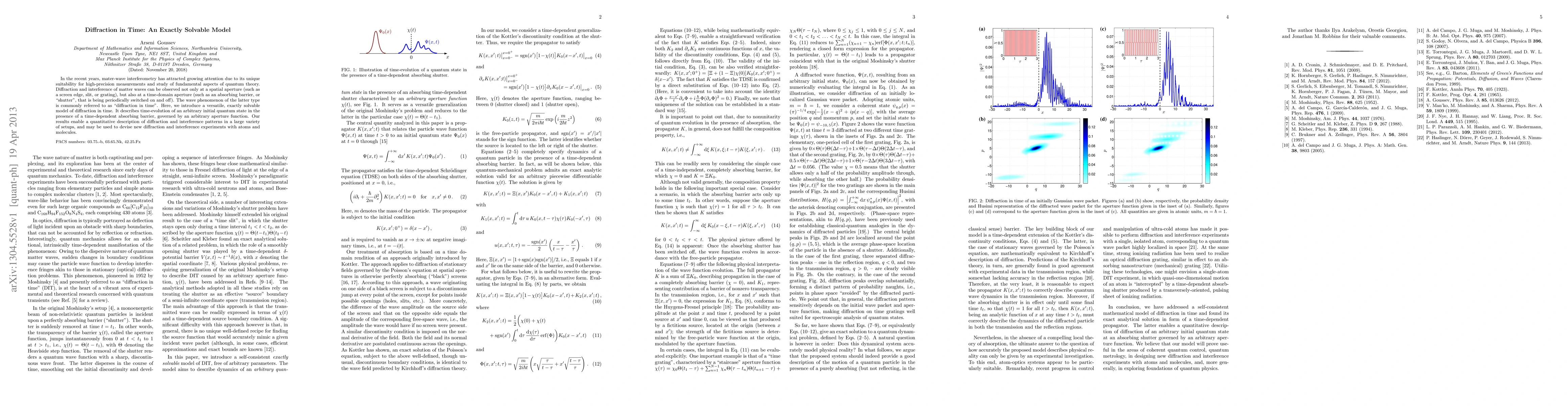 In the recent years, mater-wave interferometry has attracted growing attention due to its unique suitability for high-precision measurements and study of fundamental aspects of quantum theory. Diffraction and interference of matter waves can be observed not only at a spatial aperture (such as a screen edge, slit, or grating), but also at a time-domain aperture (such as an absorbing barrier, or "shutter", that is being periodically switched on and off). The wave phenomenon of the latter type is commonly referred to as "diffraction in time". Here, we introduce a versatile, exactly solvable model of diffraction in time. It describes time-evolution of an arbitrary initial quantum state in the presence of a time-dependent absorbing barrier, governed by an arbitrary aperture function. Our results enable a quantitative description of diffraction and interference patterns in a large variety of setups, and may be used to devise new diffraction and interference experiments with atoms and molecules.