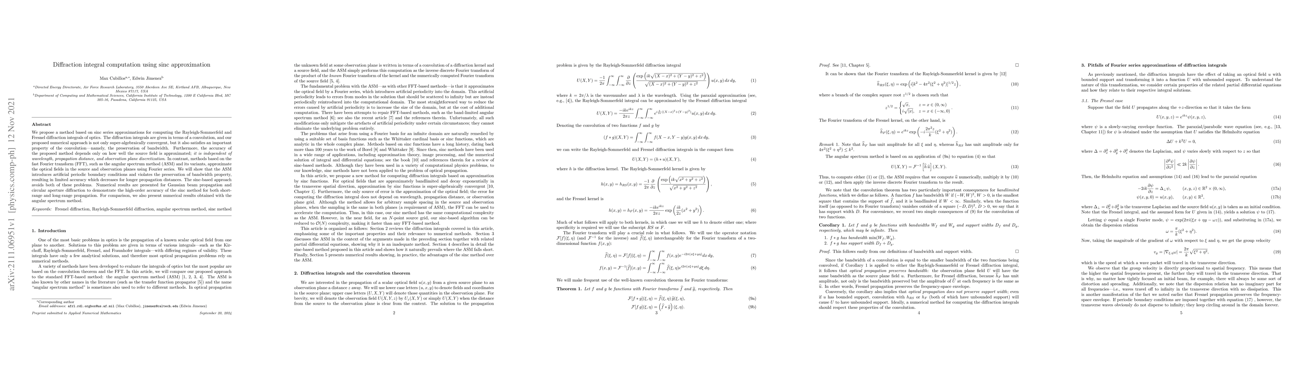 Researchers propose a new method for computing diffraction integrals using sinc approximation, offering higher accuracy and preserving bandwidth without artificial boundary conditions.